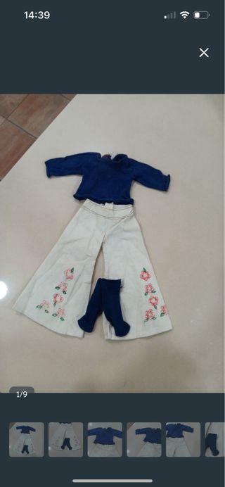 Muñeca antigua Carolin antigua años 70 con varios conjuntos de ropa. - Muñeca de plástico con pelo rubio largo. - Vestido rosa pálido con detalles de encaje. - Incluye varios trajes adicionales. - Ropa de bebé de tela blanca y azul nancy .