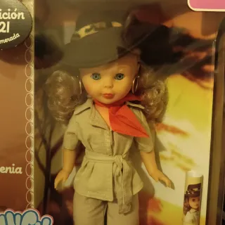 Muñeca Nancy Kenia, lista para la aventura. - Incluye sombrero y pañuelo. - Pendientes de aro dorados. - Ropa de exploradora.