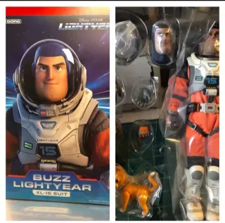 Figura de Buzz Lightyear con el traje XL-15 de Disney Pixar. Incluye accesorios. - Figura de Buzz Lightyear. - Traje XL-15. - Accesorios intercambiables. - Incluye figura de Sox Figura original nueva a estrenar, envío o trató en mano saludos. 150