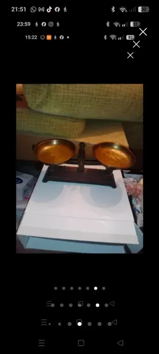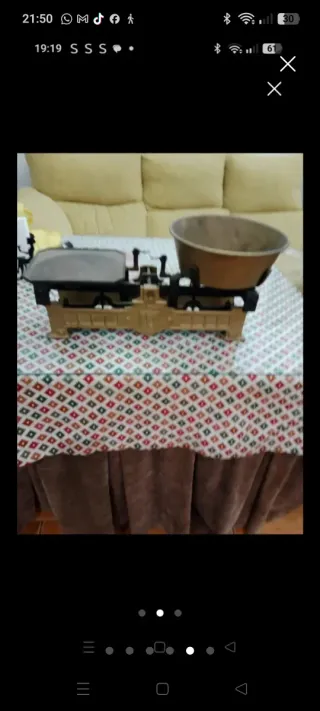 Báscula antigua de color dorado, un objeto decorativo y funcional.es de 10kilos - Diseño clásico y elegante. - Bien conservada.se puede incluir un juego de pesas, por 45euros mas
