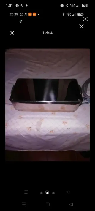 Plancha eléctrica antigua con un diseño clásico. - Voltaje: 125V. - Cable de alimentación conector. - Base de apoyo metálica.