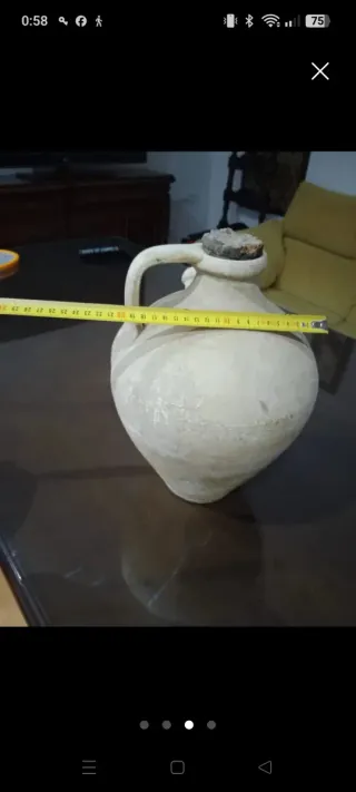 Antiguo cántaro de barro hecho a mano. - Diseño artesanal. - Material: Barro.