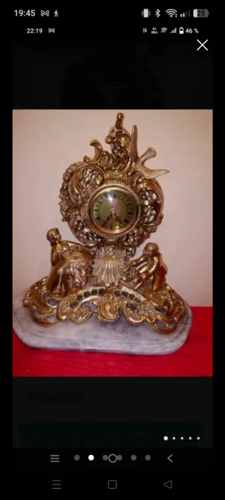 Elegante reloj de sobremesa con un diseño ornamentado en latón.pesa más de 10kilos - Base de mármol. - Figuras decorativas. - Funciona con pilas.