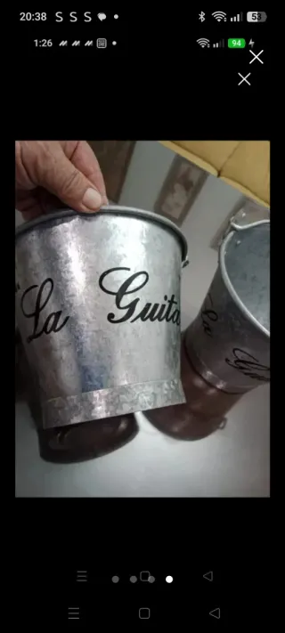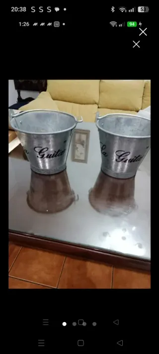 Par de cubos metálicos plateados, ideales para enfriar botellas de vino o cava. - Diseño elegante con texto La Guita. - Asas para facilitar su transporte.