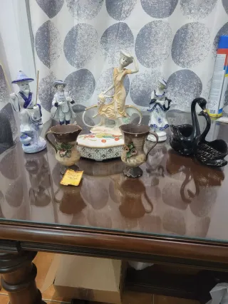 Lote Cerámica Antigua Figuras Cisnes Tazas