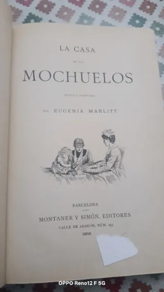 Libro antiguo con ilustraciones. - Título: La casa de los mochuelos - Autor: E. Marlitt - Ilustraciones en tonos rojos - Encuadernación de tapa dura
