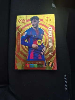 Carta de fútbol Panini FC Barcelona, edición Premium Oro. - Jugador: Pedri - Serie: Edición Limitada - Estadísticas: 66, 100, 86, 252