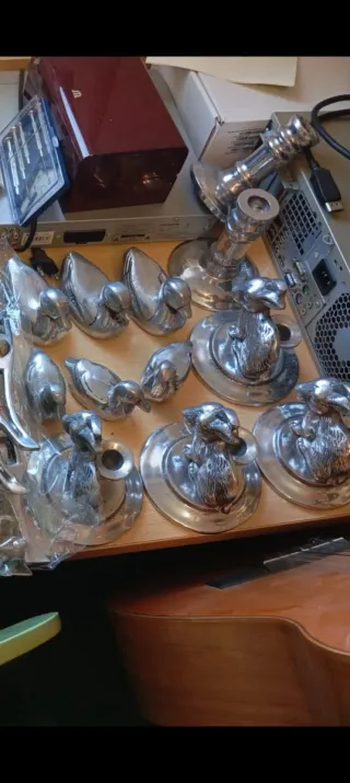 Conjunto de varias piezas decorativas de peltre, elaboradas artesanalmente. - Material: Peltre. - Técnica: Hecho a mano. ⬇️⬇️⬇️⬇️⬇️ **Se escuchan ofertas**
