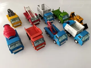 Lote de camiones y excavadora Mini Sansón, fabricados por Rico en Ibi, Alicante, en el estado que se ven en las fotos.