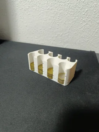 Práctico organizador de monedas con capacidad de unas 15-20 monedas por valor (unas 280 en total). Ideal para mantener tus monedas ordenadas. - Colores: Blanco, Negro, Amarillo o Rosa - Fabricado en pla (plástico)