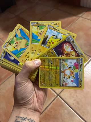 Incluye: - 61 Cartas comunes (3 pikachus) - 6 Reverse Holos (Raichu, electivire..)
