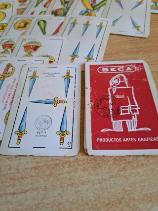 Baraja de cartas española de la marca Beca Artes Gráficas. - Diseño de espadas. - Incluye 40 cartas. - Edición especial aniversario 1955-1980.