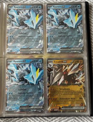 Se vende lote de 12 cartas EX de diferentes colecciones en español. El lote consta de las siguientes cartas: Mega-Charizard X ex: 3€ Mega-Absol ex: 1€ Keldeo ex: 0,50€ Genesect ex: 0,50€ Excadrill ex (x2): 0,50€ Mega-Heracross ex: 0,50€ Mismagius ex: 0,50€ Oricorio ex: 0,50€ Kyurem ex (x3): 1€ Se venden todas juntas. Precio NO negociable. Se aceptan pagos por bizum comprando por 1€ en wallapop, también venta en mano por la zona de Lleida. Se precisan mas fotografías si es necesario. NO LEER: pokémon, charizard, pikachu, box, caja, rivales, cartas, colección, bulk, fuegos fantasmales, blanco y negro, llama blanca, megaevolucion.