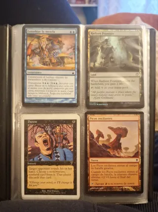 Lote de cuatro cartas de Magic: The Gathering en español. - Enturbiar la mezcla - Radiant Fountain - Duress - Picos oscilantes -Mox de cromo ... ADMITO OFERTAS, EL PRECIO NO ES 1 EL ESTADO DE CADA CARTA ES VARIABLE