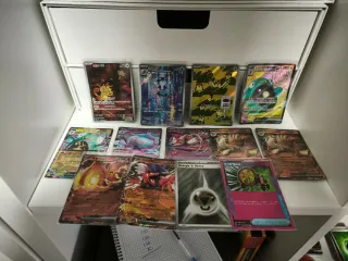 Se vende lote de cartas jumbo/oversize de Pokemon TCG en español, hay cartas lenticulares y normales. El lote completo se vende por 22€, si se quiere unidad suelta, se venden a 4€/ud.