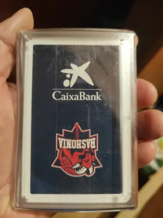 Baraja de cartas española con diseño del equipo Baskonia y patrocinio de CaixaBank. - Diseño del equipo Baskonia. - Logotipo de CaixaBank.