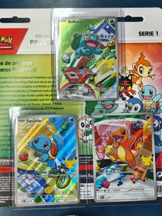 Colección de cartas Pokémon de la Serie 1, con los Pokémon iniciales de Kanto. Incluye las cartas de Bulbasaur, Squirtle y Charmander. - Cartas en español. - Ilustraciones de los Pokémon originales. - Ideal para coleccionistas.