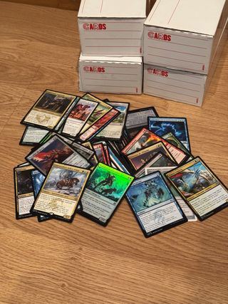 Gran lote de cartas de Magic: The Gathering usadas por desestockaje de almacen. Lote real de un total de 500.000 cartas, 5.000€. Puedes llevar el lote completo o un lote parcial de 50.000 cartas por 500€. - Aproximadamente 50.000 cartas. - Cartas de diferentes colecciones, idiomas y estados. - Incluye cartas comunes, infrecuentes, tokens, tierras. - Incluye cajas de almacenaje de 4.400 cartas cada una. - Sin posibilidad de envio. Recogida en Madrid.