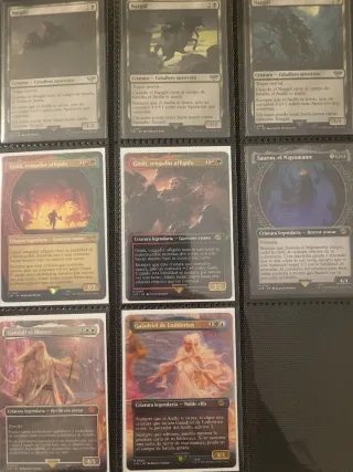 Vendo o cambio por cartas que me falten lote de cartas de Magic: The Gathering de la colección El Señor de los Anillos. - Nazgul 20€ - Nazgul alt. 10€ - Gimli, vengador afligido (ring art) 10€ - Gimli, vengador afligido (full art) 20€ - Sauron, el Nigromante (ring art) 4€ - Gandalf el Blanco (full art) 30€ - Galadriel de Lothlórien (full art) 20 €
