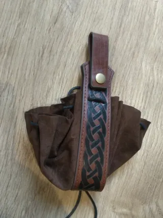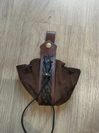 Bolsa de cuero con diseño inspirado en la época medieval y vikinga. Runas celta. Dados de rol disfraces Cartas Magic heroquest - Cierre con cordón ajustable. - Detalle de trenzado en la parte frontal. - Incluye un pasador metálico. Rol dados Warhammer Magic the gathering señor de los anillos games of thrones Harry potter hobbit