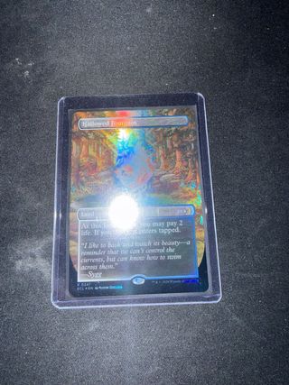 Carta de Magic: The Gathering Fuente Consagrada de la colección Unfinity. Edición foil. Recogida en mano en Madrid. - Tipo de carta: Tierra - Llanura Isla. - Habilidad: Cuando Fuente Consagrada entre al campo de batalla, puedes pagar 2 vidas. Si no lo haces, entra girada. - Ilustrador: Piotr Dura. - Número de carta: 277. - Rareza: Rara (R). - Idioma: Inglés (EN). - Año de publicación: 2022.