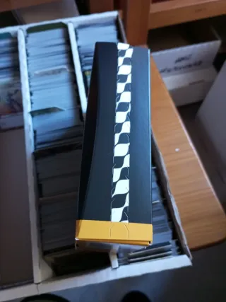Casi todas las cartas originales, solo he cambiado 3 (de las baratas) para mejorarlas por estas otras 3 de la segunda foto. - Incluye la caja del mazo. - Protector de cartas Dragon Shield Gold Matte. Nuevo vale 120 euros
