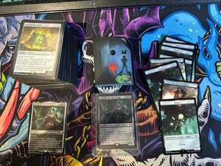 Colección de cartas para Commander de Magic: The Gathering. 100 cartas enfundadas + varias extras. Toda una ganga pa jugar con los colegas. El mazo es bueno (o mis compañeros muy malos), he ganado unas cuantas partidas con el.
