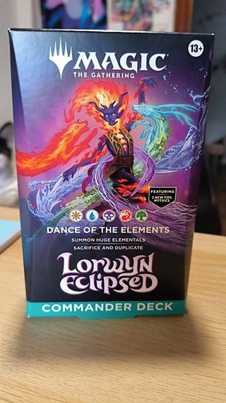 Commander Deck de Magic The Gathering, Dance of the Elements de Lorwyn Eclipsed en inglés. Sin abrir, contiene: - Mazo de 100 cartas para formato commander + tokens. - Contiene 2 cartas legendarias tradicionales foil. No negociable, no escucho ofertas.