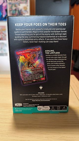 Baraja de Commander Dance of the Elements de Magic: The Gathering, de la colección Lorwyn Eclipsed. Precintado En Inglés -Incluye la carta Ashling, the Limitless (foil) como comandante. - Contiene 2 cartas foil tradicionales legendarias. - Temática de Elementales y Sacrificio y Duplicación. Eclipsado, MTG, Mazo