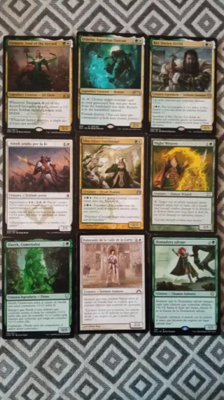 Mazo de Magic The Gathering de 60 cartas en blanco y verde. Incluye criaturas y encantamientos. Son las cartas que aparecen en las fotos. - Syr Armont, la Redentora - Daxos, bendecido por el sol - Renata, Called to the Hunt - Prava of the Steel Legion
