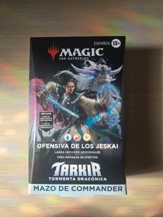 Mazo de Commander de Magic: The Gathering, Ofensiva de los Jeskai de la colección Tarkir Tormenta Dracónica. El mazo está sin abrir. - Incluye sobre de coleccionista con muestras. - Contiene 2 cartas legendarias foil tradicionales. - Idioma: Español.