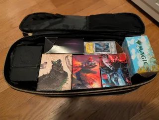 Práctica bolsa de transporte para tus mazos de cartas de Magic: The Gathering. Diseñada para organizar y proteger tus cartas. Caben varios mazos, dados y tapete. - Compartimentos interiores. - Cierre de cremallera. - Diseño compacto. NO INCLUYE EL CONTENIDO DE LAS FOTOS