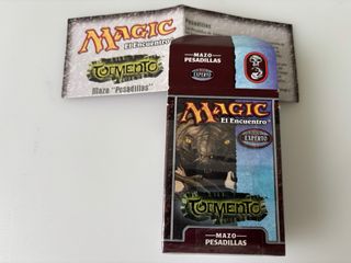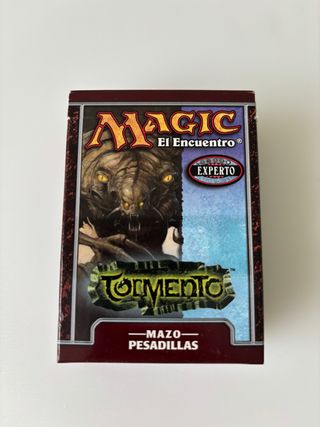 MTG Magic el encuentro, Edicion Tormento, mazo Pesadillas rojo-negro preparado de 60 cartas. Perfectamente conservado en español. Compuesto de: -12 Pantanos -9 Montañas -2 tierras -12 criaturas negras -10 criaturas rojas -10 encantamientos -5 conjuros