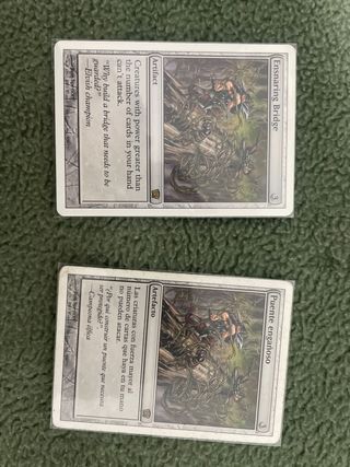 Carta de Magic: The Gathering, Puente Engañoso (Ensnaring Bridge). - Tipo: Artefacto. - Texto de habilidad: Las criaturas con fuerza mayor al número de cartas que haya en tu mano no pueden atacar.