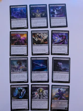 Lote de 12 cartas de Magic: The Gathering, de la expansión Edge of Eternities. Todas son infrecuentes. - Faller's Faithful - Tragic Trajectory - Hymn of the Faller - Susurian Voidborn - Monoist Sentry - Lightless Evangel - Monoist Circuit-Feeder - Hylderblade - Dubious Delicacy - Blade of the Swarm - Vote Out - Susurian Dirgecraft