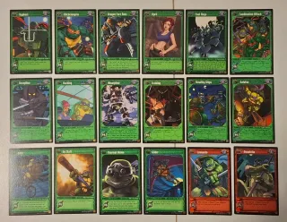 Es la coleccion de Tortugas Ninja completa de 80 cartas basicas,la coleccion constava de 100 cartas de las cuales habian 10 super raras y 10 ultra raras,que estas 20 cartas no estan en este set.Las cartas estan en perfecto estado.De la marca Konami en 2004. Tags:ccg,tcg,juego cartas,konami,tmnt,tortugas ninja,donnatelo,leonardo,michelango,raphael,splinter,shredder,harry potter,draco,hermione,star trek fleer,trading cards,decipher,magic,wotc,star wars,guerra de las galaxias,retorno del jedi,imperio contraataca,lotr.....