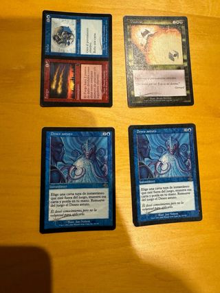 Conjunto de cartas de Magic: The Gathering. - Carta Vindicar (foil). - Carta Fuego hielo (foil). - Carta Deseo astuto (foil). - Carta Deseo astuto (foil). El precio es por estas 4. Tengo mas, principalmente premodern, preguntame. También tengo cartas no foil.