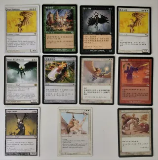 Colección de 11 cartas de Magic The Gathering. - Angel luminoso - Criatura - Angel - Angel de salvación - Criatura - Angel - Angel caído - Criatura - Angel - Serra Angel - Summon Angel - 铁壳甲虫 - 墓穴天使 - 眩目天使