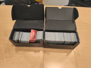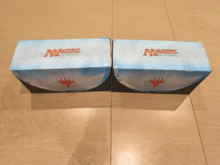 Dos cajas de cartas de Magic The Gathering. Presentan un diseño con el logo de Magic y un símbolo rojo. - Diseño con temática de Magic The Gathering. - Símbolo icónico de Magic en color rojo. - Precio negociable - +200 cartas