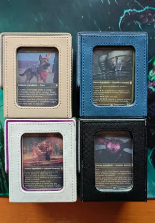 Conjunto de 4 mazos de Magic: The Gathering de la colección Fallout en español. - 4 mazos. - Con portamazos. - Cartas en estado M/NM. - Enfundados. - Completos y en español. - Tengo las cajas de 2 y accesorios de otro, falta la caja original de dos.