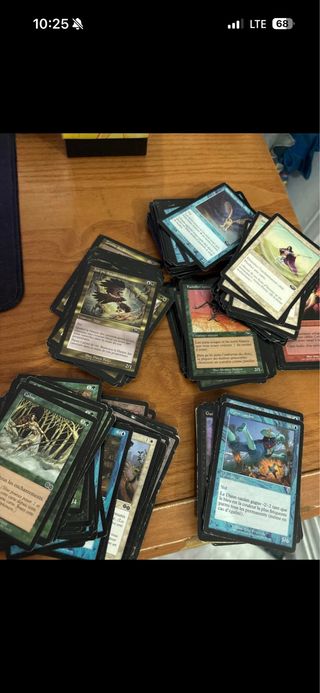 MEGA-LOTE 1300+ Cartas Magic: The Gathering Pongo a la venta un lote de más de 1300 cartas de Magic, ideal para jugadores que quieran ampliar su base de cartas o para aquellos que están empezando y buscan cartas para montar mazos. Cartas de multiples ediciones a lo largo de los años. Contenido del lote: • Más de 1300 unidades. • Dividido en bloques por color (5 colores + artefactos + tierras no básicas + tierras básicas + multicolor) e incluye también un lote mas pequeño de raras. La mayoría de las cartas están en buen estado pero ha algunas antiguas que llevan muchos años conmigo que están peor. Principalmente en español e in