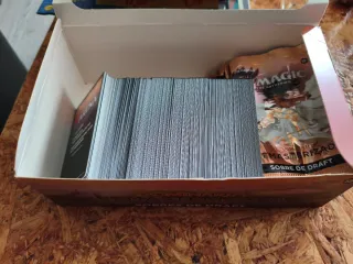 Caja bulk con 323 cartas aproximadamente de comunes,infrecuentes e alternativas,artefactos,tierras normales y foils,tokens. Estado mint,nunca usadas. Precio cardmarket casi 32€.