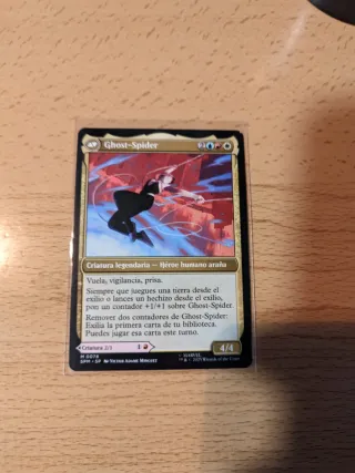 Colección de cartas de Magic: The Gathering con temática de Spiderman, estilo full art (comic-viñeta y estilo lanzaredes). A 10 euros la unidad (Spiderman simbionte 12), 14 las foils. Hay: - Seda, tejeredes - Araña corazón arácnido - Araña radiactiva foil - Araña escarlata foil - La saga del clon - La última cacería de kraven (foil) - La muerte de Gwen Stacy - La muerte de Gwen stacy (foil) - Gata negra, ladrona astuta - Spiderman simbionte