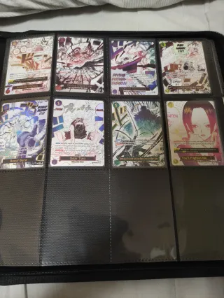 No comprar a 1 euro Busco cambiar por cartas que me interesen mas, aunque se puede estudiar la venta de alguna suelta Lote de cartas del popular anime One Piece, centrado en el personaje Monkey D. Luffy. - Incluye varias cartas con diferentes ilustraciones y valores. - Cartas de personaje y líder. - Algunas cartas presentan diseños especiales y foil Luffy, manga, tcg, nami, boa, Robin, sanji, zoro
