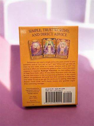 Baraja de cartas Angel Answers de Radleigh Valentine. Incluye 44 cartas y un libro guía. - Ilustraciones de Marius Michael-George. - Cartas de oráculo para obtener respuestas. - Prácticamente sin usar. - Mensajes en inglés. - Ideales para lecturas sobre decisiones y tiempos.