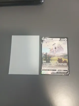 Carta de Pokémon Arceus V. - Ataque: Carga Trinidad. - Habilidad: Hilo Poderoso. - HP: 220. - Coste de energía: 2.