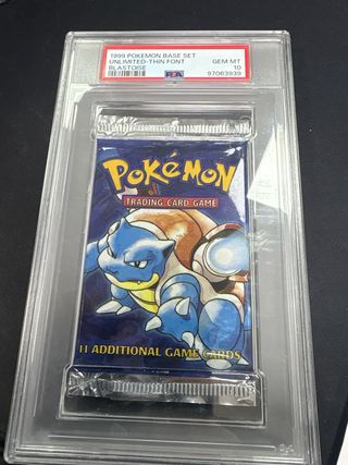 Pack de refuerzo de Pokémon Base Set de 1999, con Blastoise. - Edición Unlimited, fuente delgada. - Calificación PSA 10 Gem Mint. - Contiene 11 cartas adicionales.