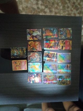 Colección de cartas Pokémon, incluyendo varias cartas EX y promocionales que cambio por bajar el pvp de Charizard #125 de FF.