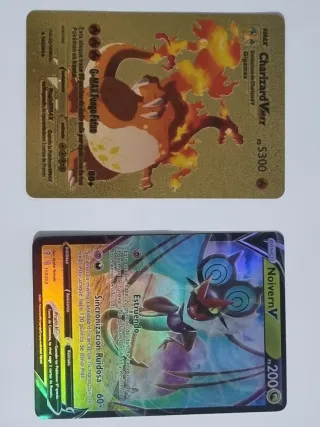 Se venden dos cartas Pokémon. Juntas o por separado. 1 carta :3€. 2 cartas: 5€ - Carta Charizard VMAX G-MAX Fuego Fatuo. - Carta Noivern V Sincronización Ruidosa.
