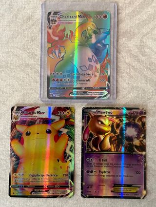 Conjunto de cartas Pokémon VMAX y EX. - Charizard VMAX - Pikachu VMAX - Mewtwo EX